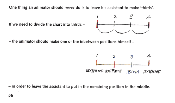 Here the animator is urged (in italics even!) not to give their assistants assignments of creating inbetween on thirds.